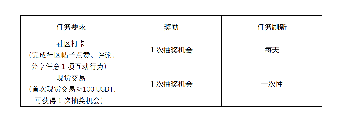火币HTX“每日打卡赢好礼,社区互动乐不停”转盘抽奖活动于2025年7月5日开始,完成任务即可获得抽奖机会。奖品丰厚,更有Apple Watch等你来赢取,详情如下: