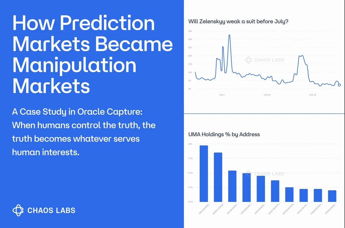 关于 Polymarket 的 Zelensky 诉讼的争议并不是一个小故障。而是价值2亿美元的人类控制的预言机中的致命缺陷:当腐败的成本低于回报时,真相就会成为一种商品,卖给出价最高的人。