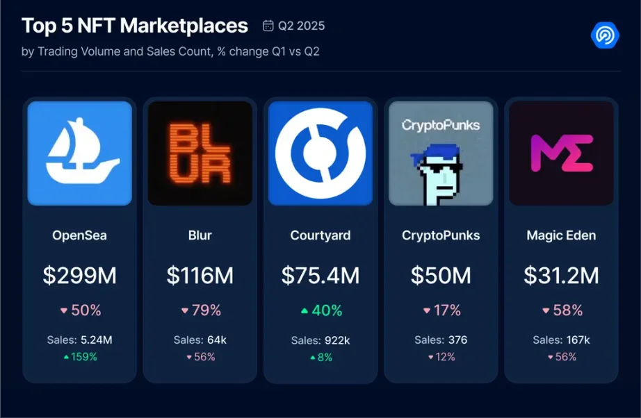 RWA NFT 交易量增长 29%,升至赛道第二位,其中 Courtyard 平台成为本季度交易量第二大的 NFT 市场。
