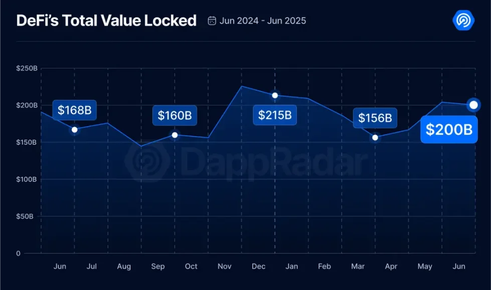 2.2025 年第二季度 DeFi 总锁仓量飙升至 2000 亿美元,但融资额暴跌 50%