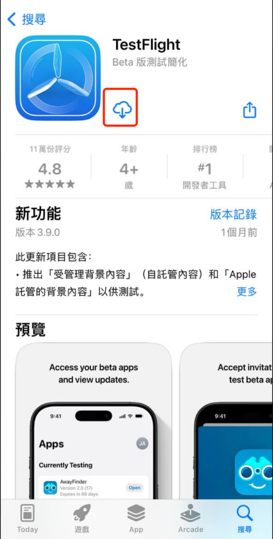 - 找到TestFlight应用,点击“获取”并安装到您的设备上。