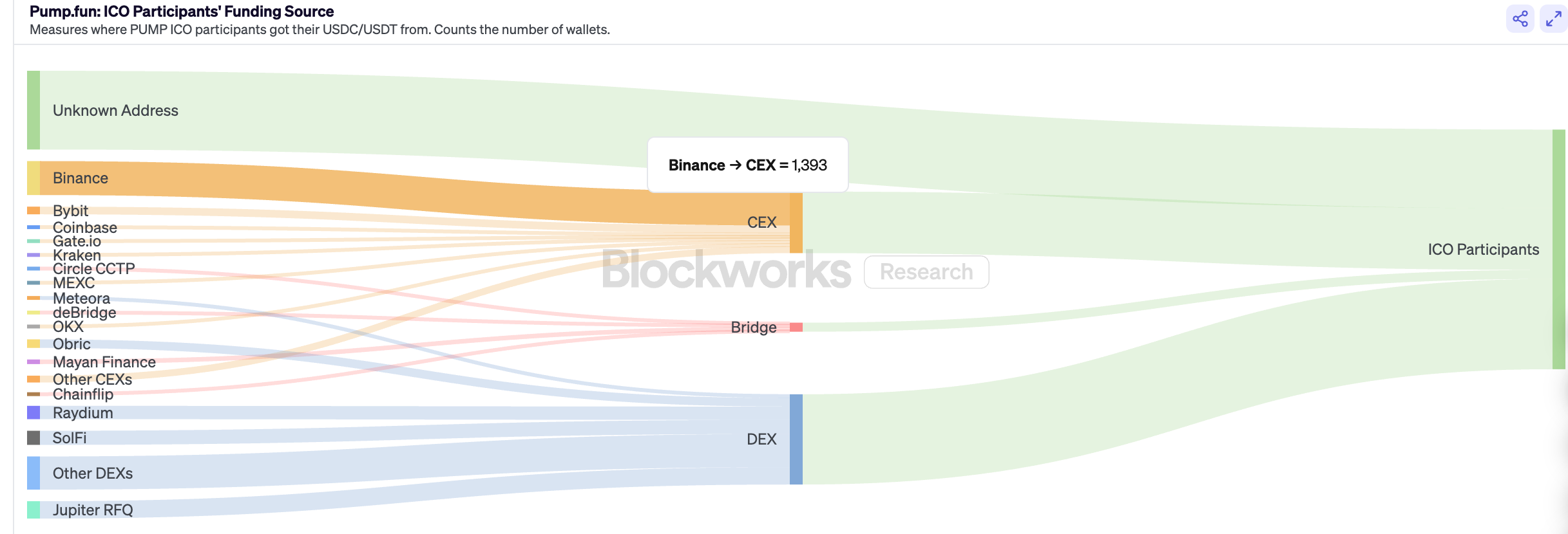 在事先的安排里,Pump.fun 的预售找了6家 CEX 进行合作;无论过程和原因具体是什么,从结果来看其中的三家预售数据均挂0,这就让人把重点放在了其他三家打到的 CEX 身上。