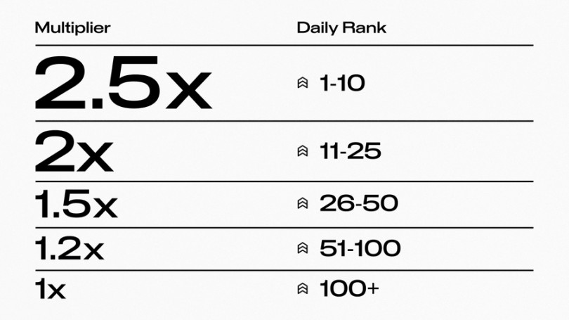 首月积分乘数:前 30 天内,每日积分排名前 100 的用户均可获得最低 1 倍的积分乘数奖励。
