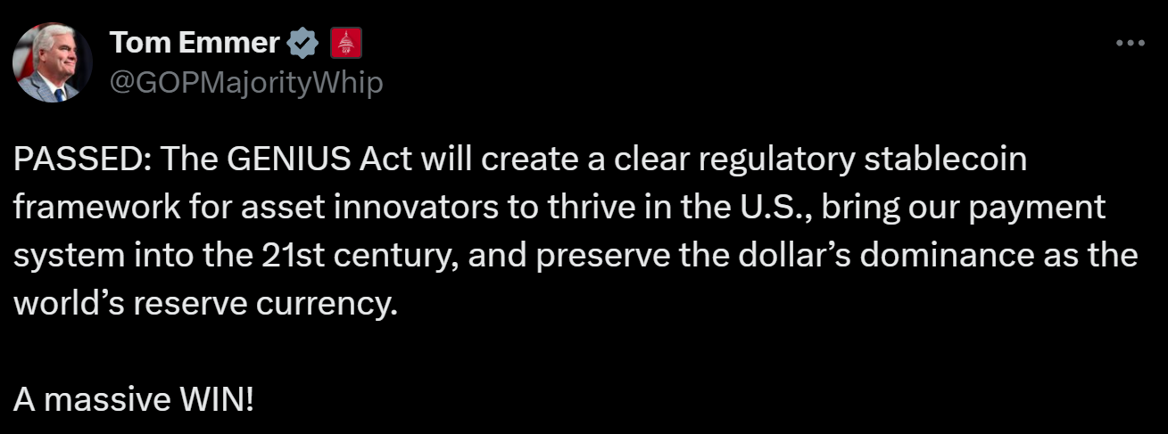 不过,客观来讲,GENIUS 法案固然让稳定币获得了制度承认,但也带来了更多合规要求,为其发展设下了更明确的规则边界。