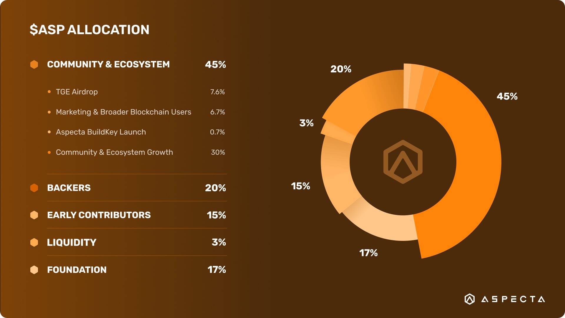 Aspecta 公布代币经济学:总供应量为 10 亿枚,45% 分配于社区和生态发展