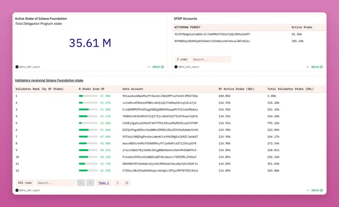 为了实现网络去中心化,Solana 基金会将 3560 万枚 SOL(占流通供应量的 6.6%)委托给了 542 个验证者。