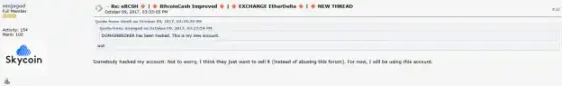 2017 年,eBitcoinCash 和 EthereumCash 这两个代币最初由加密论坛 BitcoinTalk 上的两个账号推广:DOMAINBROKER 与 ninjagod,二者均属于同一名用户。根据一则论坛消息,在 DOMAINBROKER 账号「疑似被黑」后,该用户开始转用 ninjagod 身份与投资者沟通。