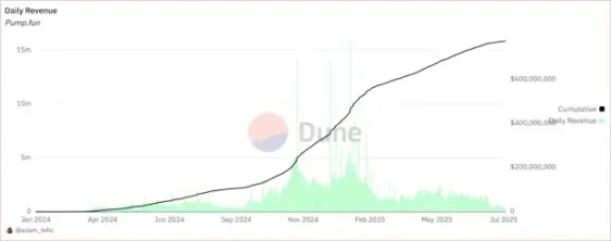 时至今日,Pump.fun 的狂飙仍未停歇。据第三方统计,其平台每日营收高达 100 万美元。创始人们的财富水涨船高,早已甩开当年的 eBitcoinCash 与 EthereumCash 数条街。而在这个「造富机器」持续运转的同时,违背初衷的 Rug Pull 也 仍在持续上演,几乎无人问津。