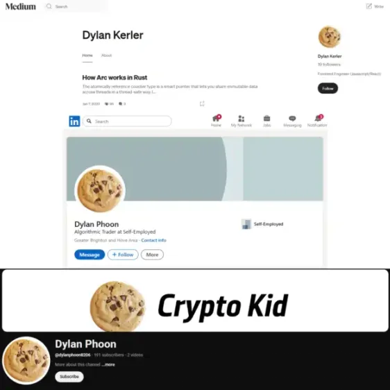 直到最近,一个使用「outdoteth」昵称的 GitHub 账号仍保留着一个旧代码库,其中包含一封以 Dylan Phoon 命名的 Gmail 邮箱;该邮箱所用头像,也同时出现在名为 DylanKerler1 的 Medium 账户上,以及 Dylan Phoon 名义下的 LinkedIn 与 YouTube 账号中。