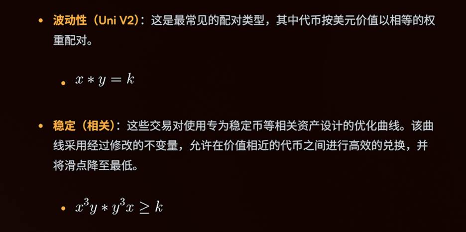 Stable 池:稳定币交易对,无常损失低,适合追求稳健的交易者;
