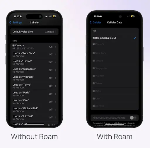 无需实体 SIM 卡,通过 Roam App 一键激活,资费实现“落地即本地”,彻底告别高额漫游费用,体验即时的便捷通信。