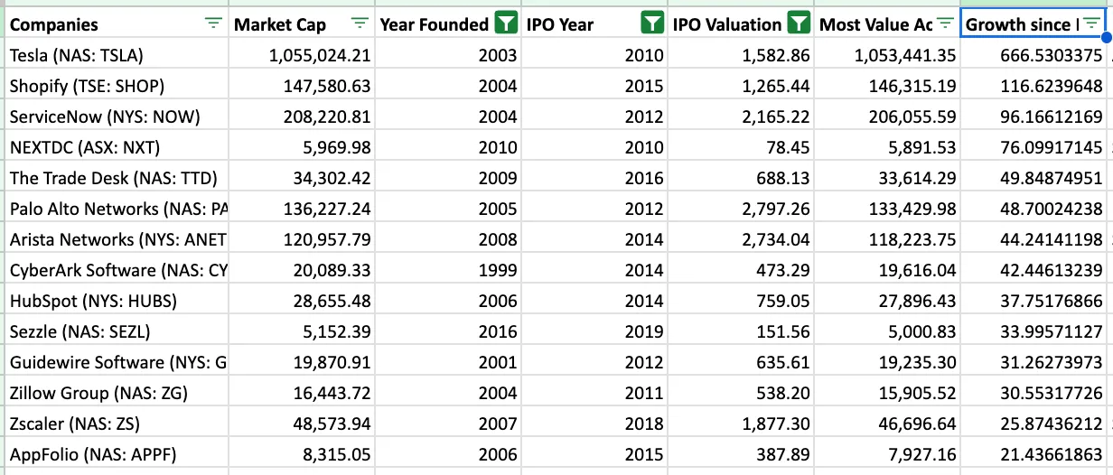 我研究了自2010年以来成立的公司,这些公司在公开市场上实现了最高倍数回报,可以说是一种低估指标。