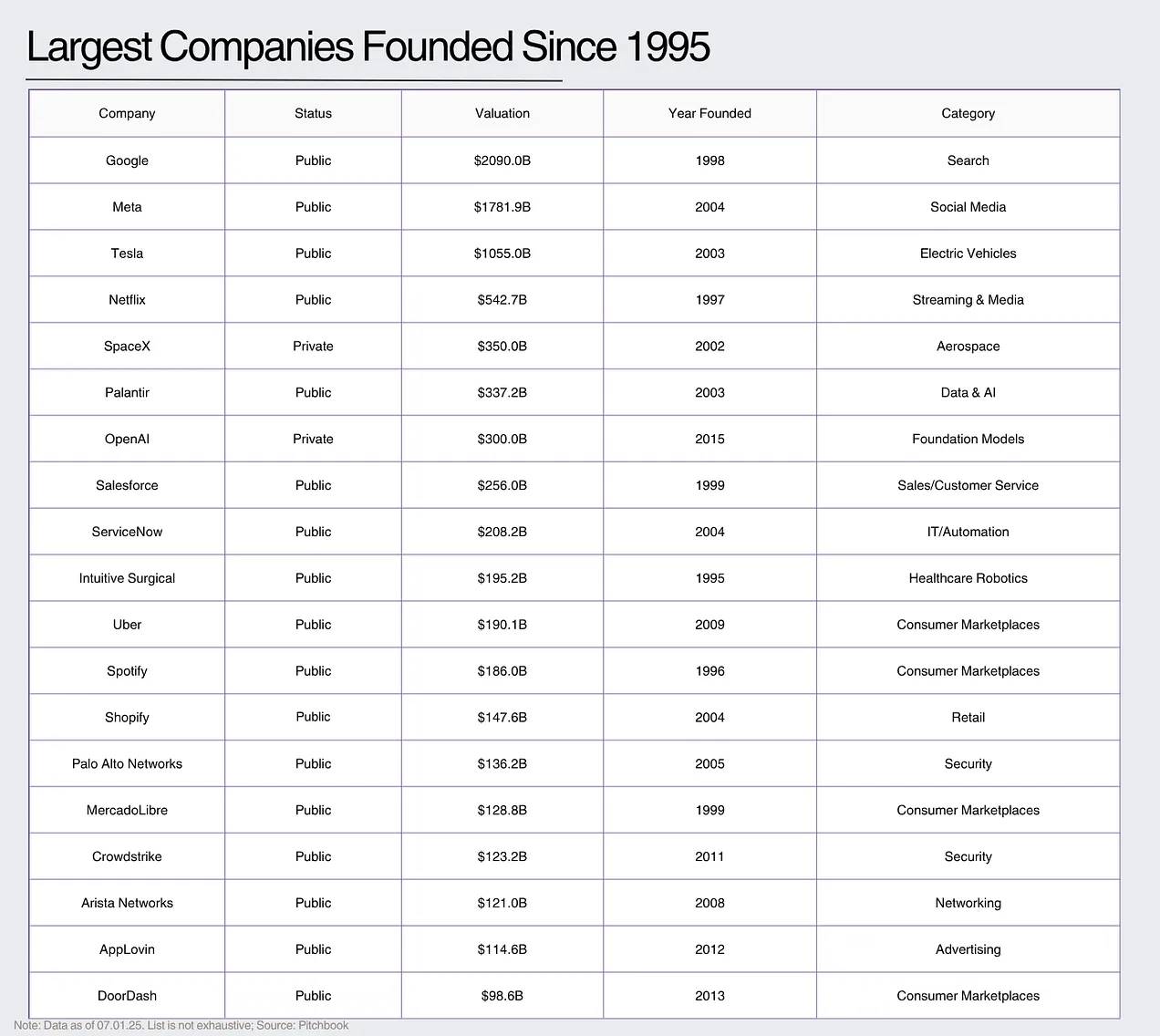 要开始了解一些数据,请查看自 1995 年以来成立的最大公司:
