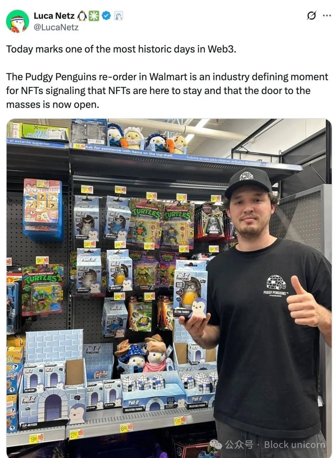 实体产品的策略起初看似疯狂。加密货币爱好者会买卡通企鹅毛绒玩具?但内茨的目标不是加密货币爱好者,而是沃尔玛的父母们。