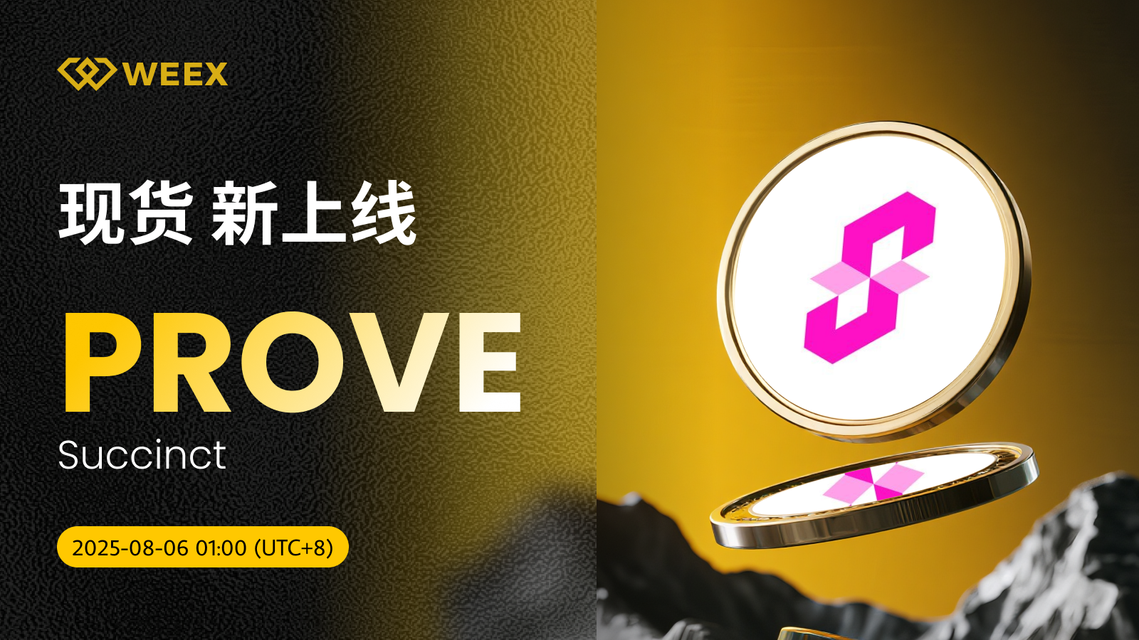 我们很高兴地宣布 Succinct (PROVE) 现已正式登陆WEEX现货交易区!即日起,您可在WEEX平台进行 PROVE/USDT交易,详情如下: