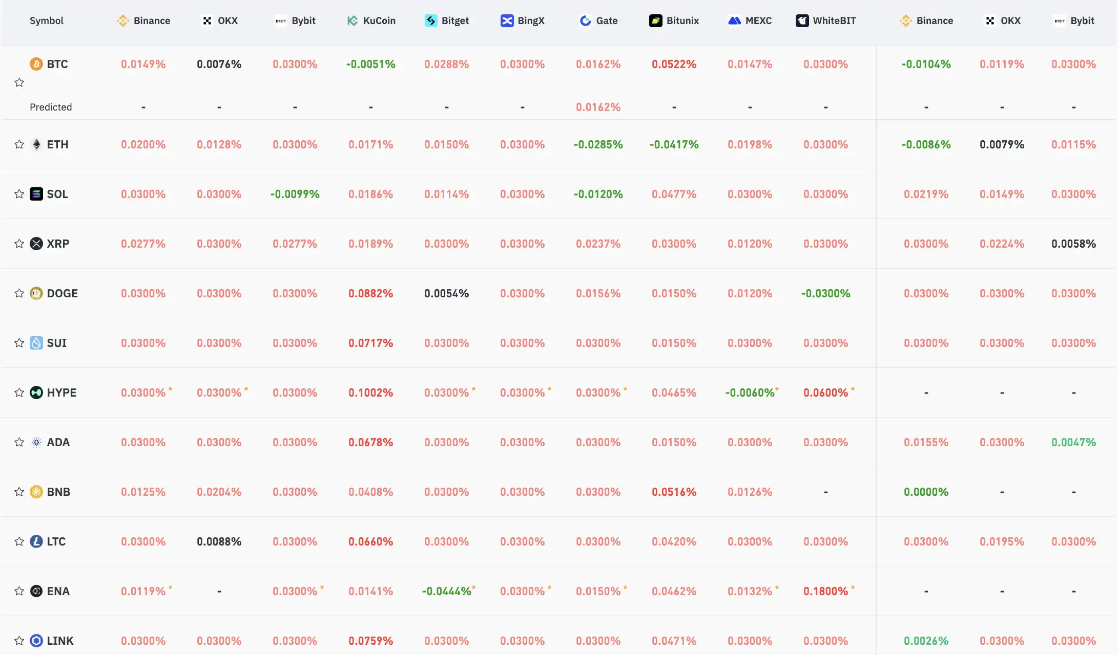 每日市场整体资金热度(根据资金费率反映)与代币解锁