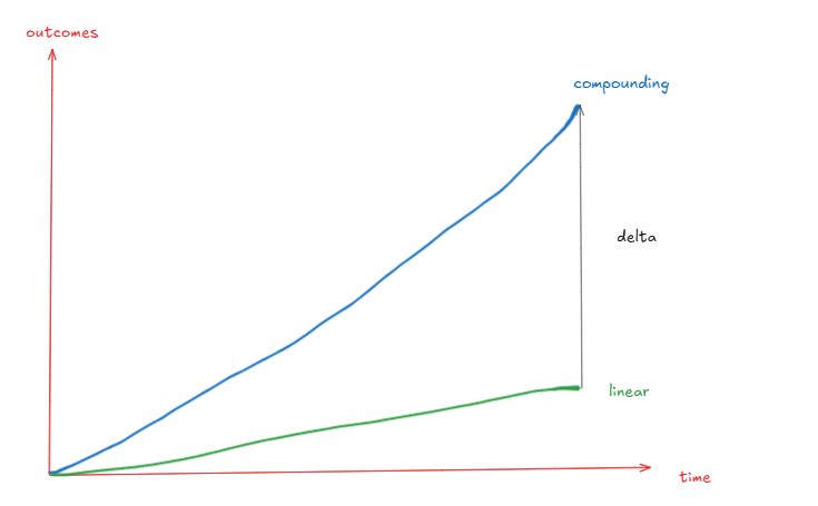 长期思维通常会带来几何级而非算术级的结果变化——例如,两年翻倍(2x),四年增长五倍(5x),五年增长十倍(10x)。