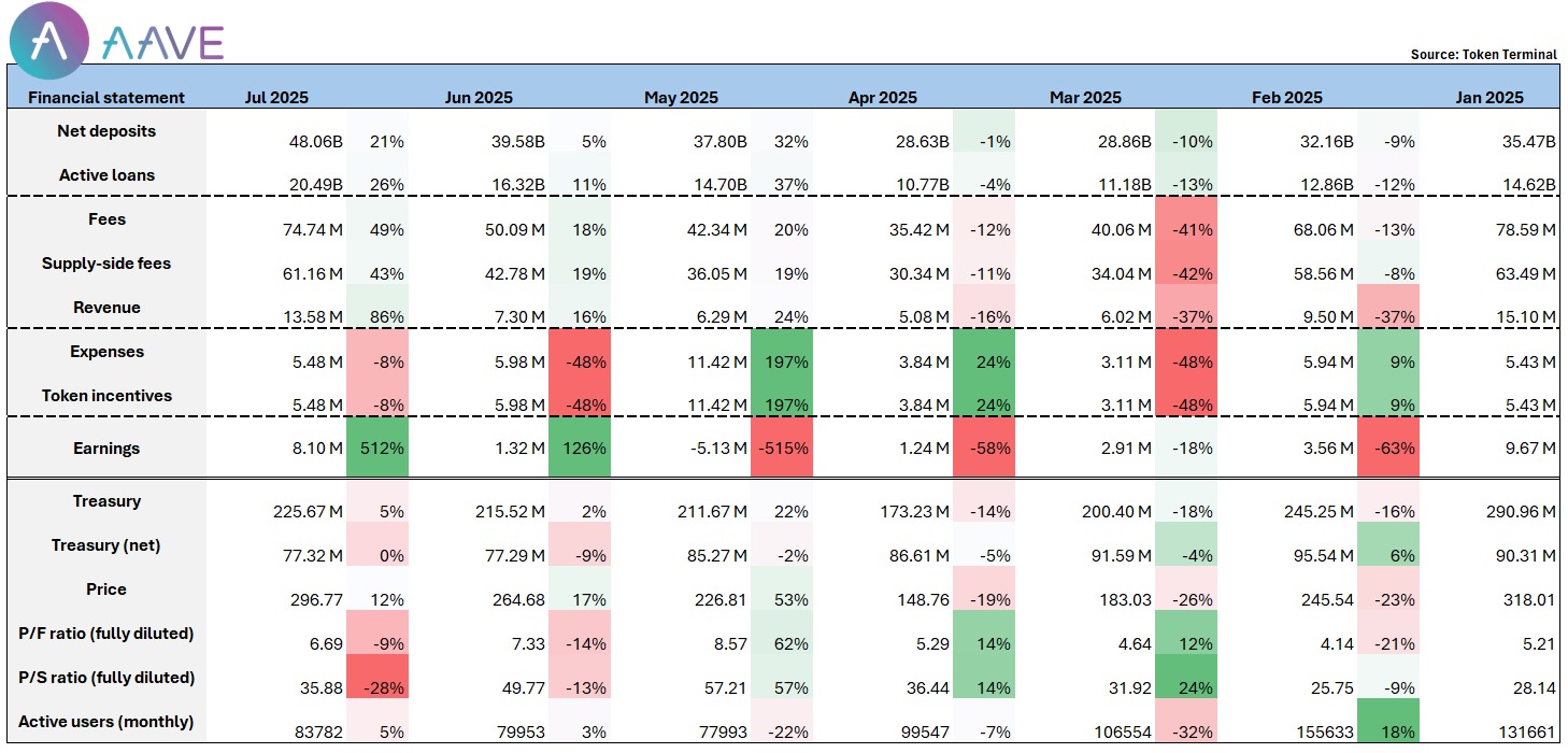 多项利好推动下,Aave 在七月迎来全面突破: