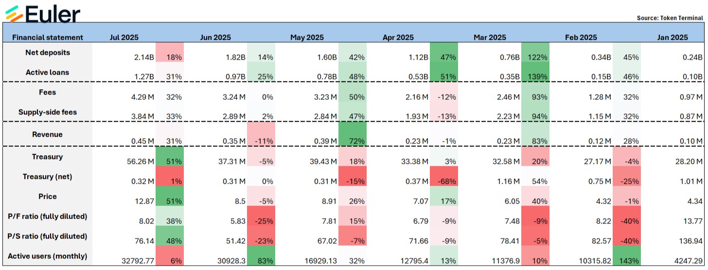 Euler 的 TVL/ 收入 / 币价都有显著增幅