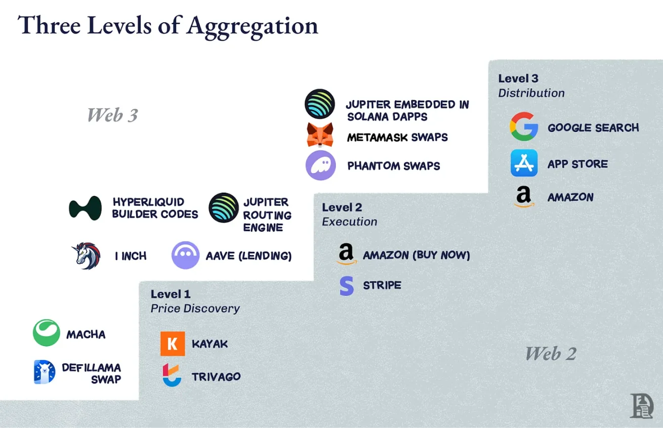 在 Solana 上,Jupiter 已达到此层级。它始于价格发现工具,通过智能订单路由进入执行层,随后嵌入 Phantom、Drift 等前端。大量 Solana 交易实为 Jupiter 交易,即使用户从未输入「jup.ag」。这就是分发控制,供应方无法绕过你触达用户。