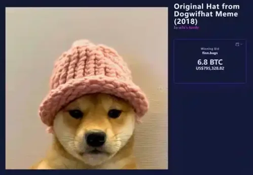 80 万美元的溢价,是 Meme 的「原味」价值。@finnbags 拍下的这顶,是 Solana 上著名的 Meme 币 $WIF(dogwifhat) 在 2018 年的原型 Meme 中所出现的那顶。现在,这顶帽子将永远从上图这只可爱小狗的头上离开,到 Bags 的手中。