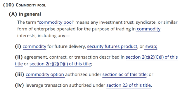 上图为 Commodity Exchange Act Section1 1a(10)对于 Commodity Pool 的定义