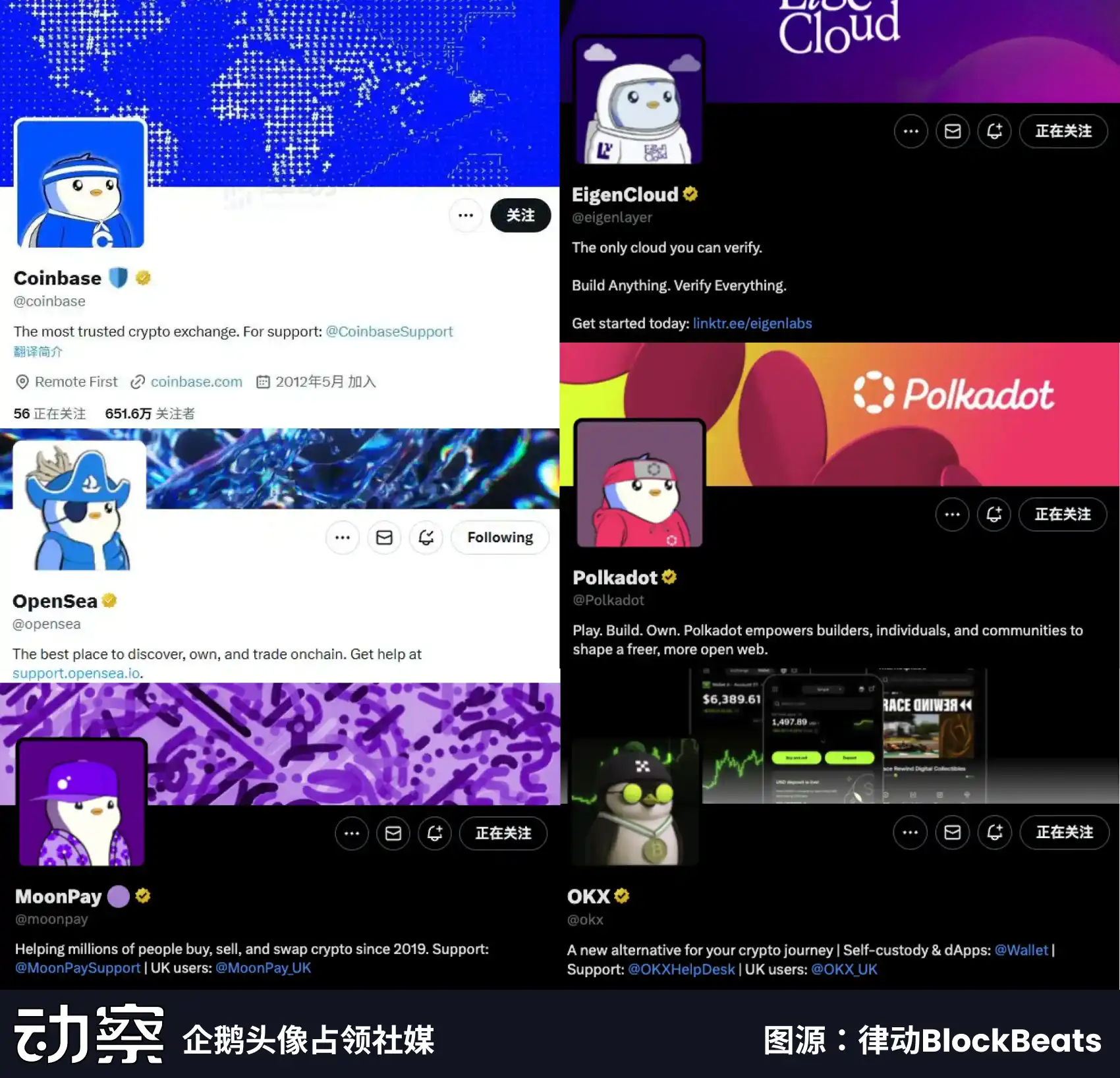 动察 Beating:最近很多名人和公司在 X 上把头像换成了 Pudgy Penguins,背后到底发生了什么?