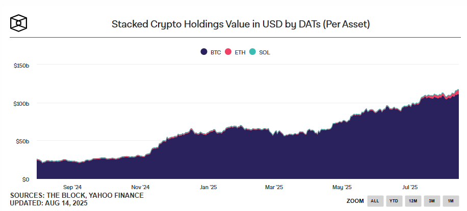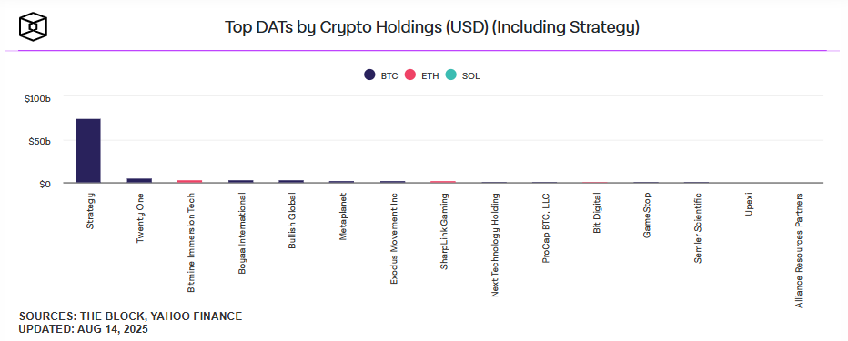 DAT 的狂热从 2024 年开始慢慢蔓延,最初是由其他公司宣布比特币资金管理策略而引发的。不久之后,这些公司开始大量持有其他热门加密货币,例如以太坊和 Solana。