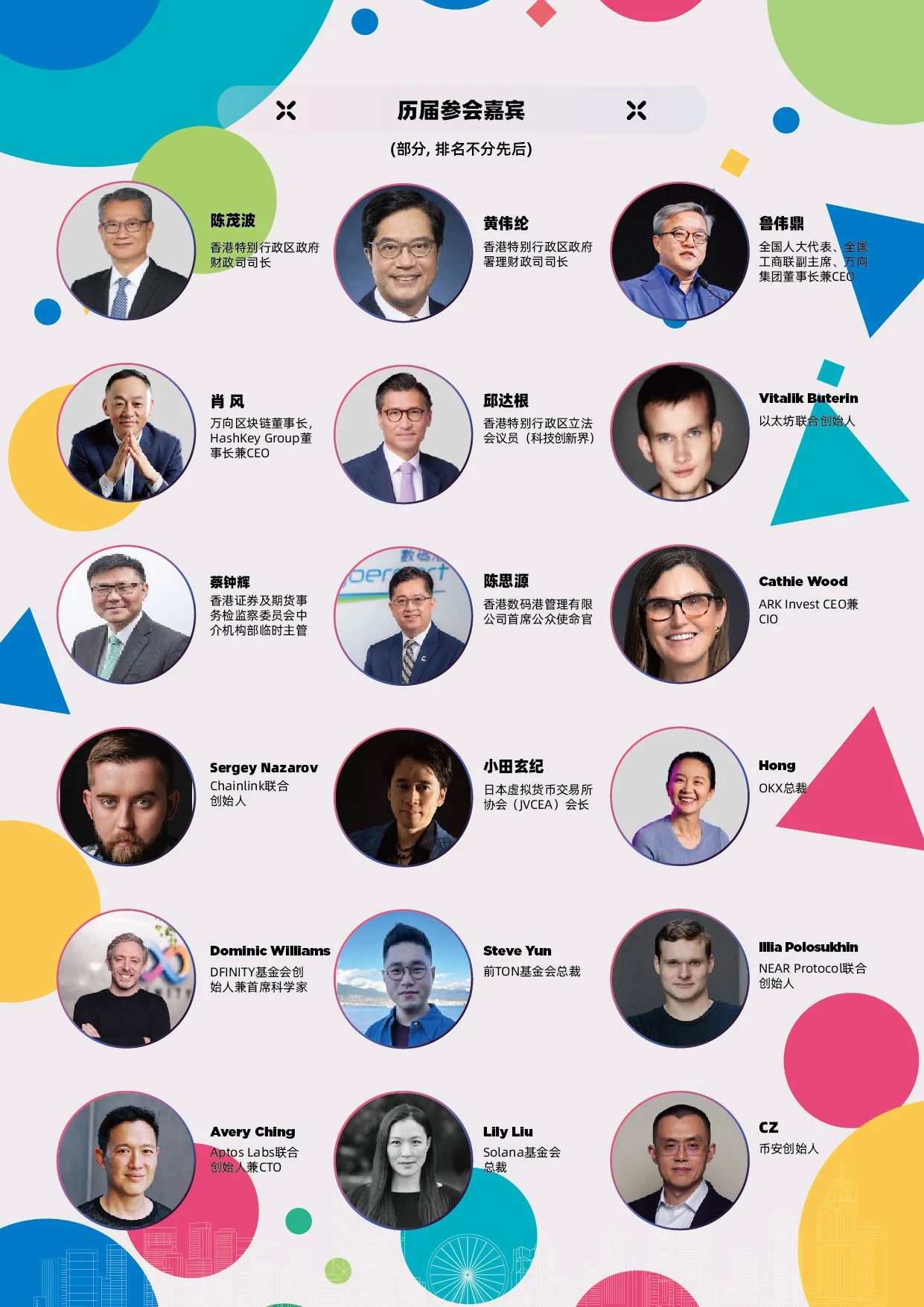 香港Web3嘉年华已成功举办三届,均取得了巨大成功。活动共汇聚超过350个前沿参展项目,邀请超过1200位业界领袖进行深度交流,累计吸引了10万余名现场观众共襄盛举,同时配套了400多场丰富多彩的周边活动。香港特别行政区政府财政司司长陈茂波、以太坊联合创始人Vitalik Buterin、ARK Invest CEO兼CIO Cathie Wood等均担任过活动演讲嘉宾。