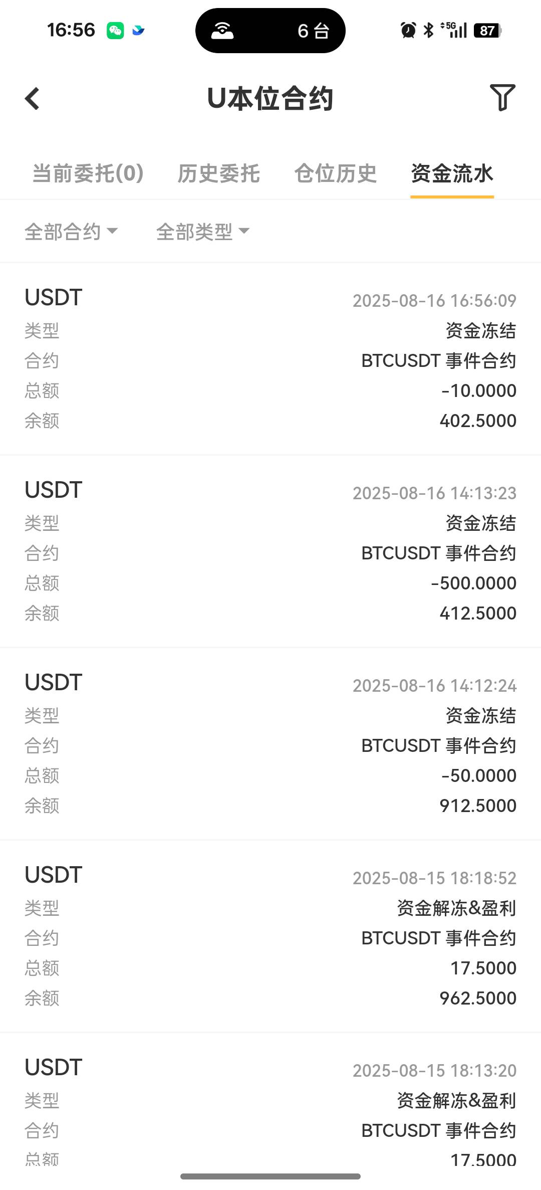 您可以在U本位合约的资金流水页面中查看事件合约相关的资金流水记录。