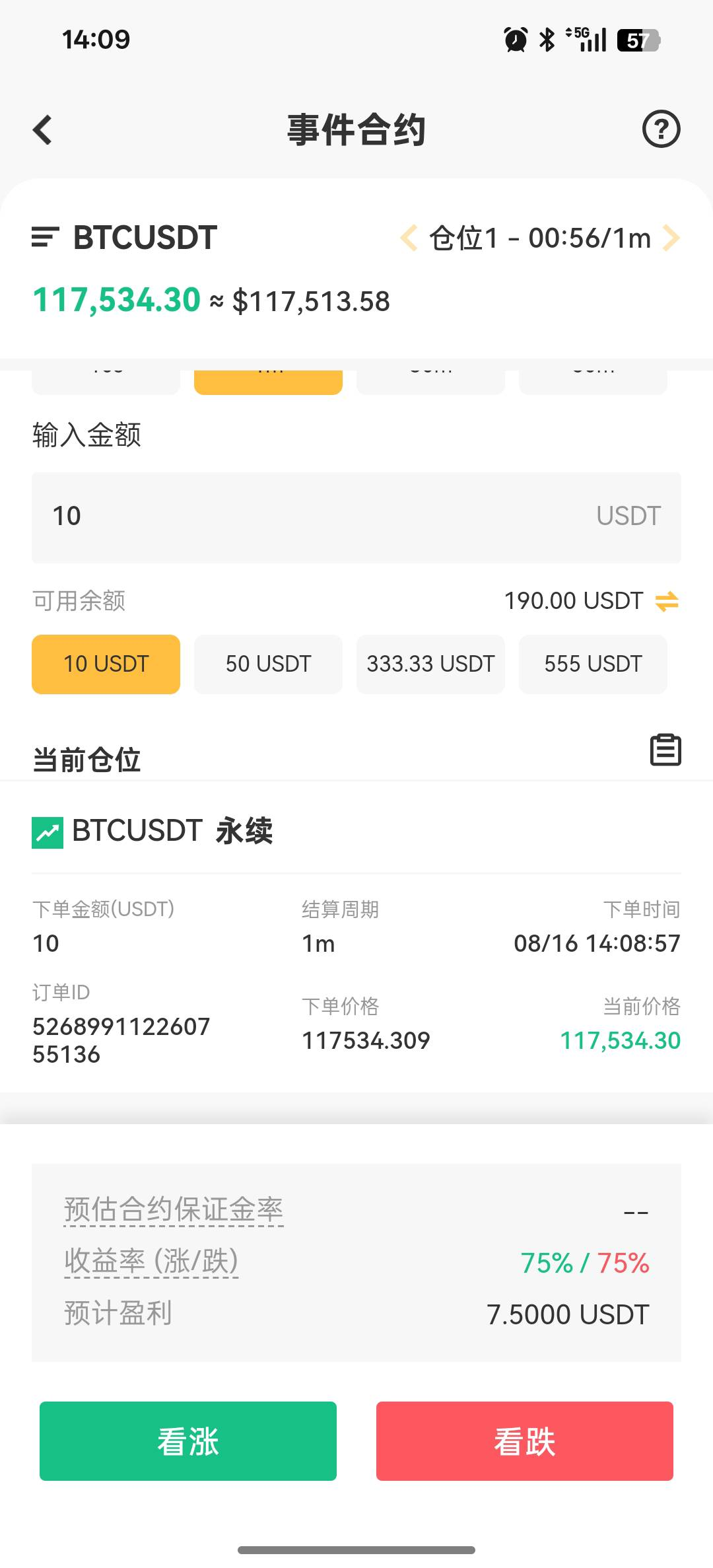 - 选择订单方向(看涨/看跌),并点击对应按钮完成下单。