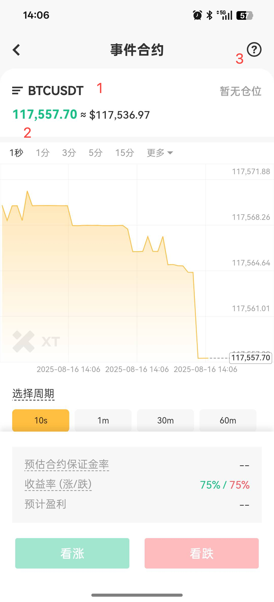 目前,XT APP 支持 看涨 和 看跌 类型的事件合约。考虑到市场需求和合规要求,合约种类会根据情况进行动态调整。