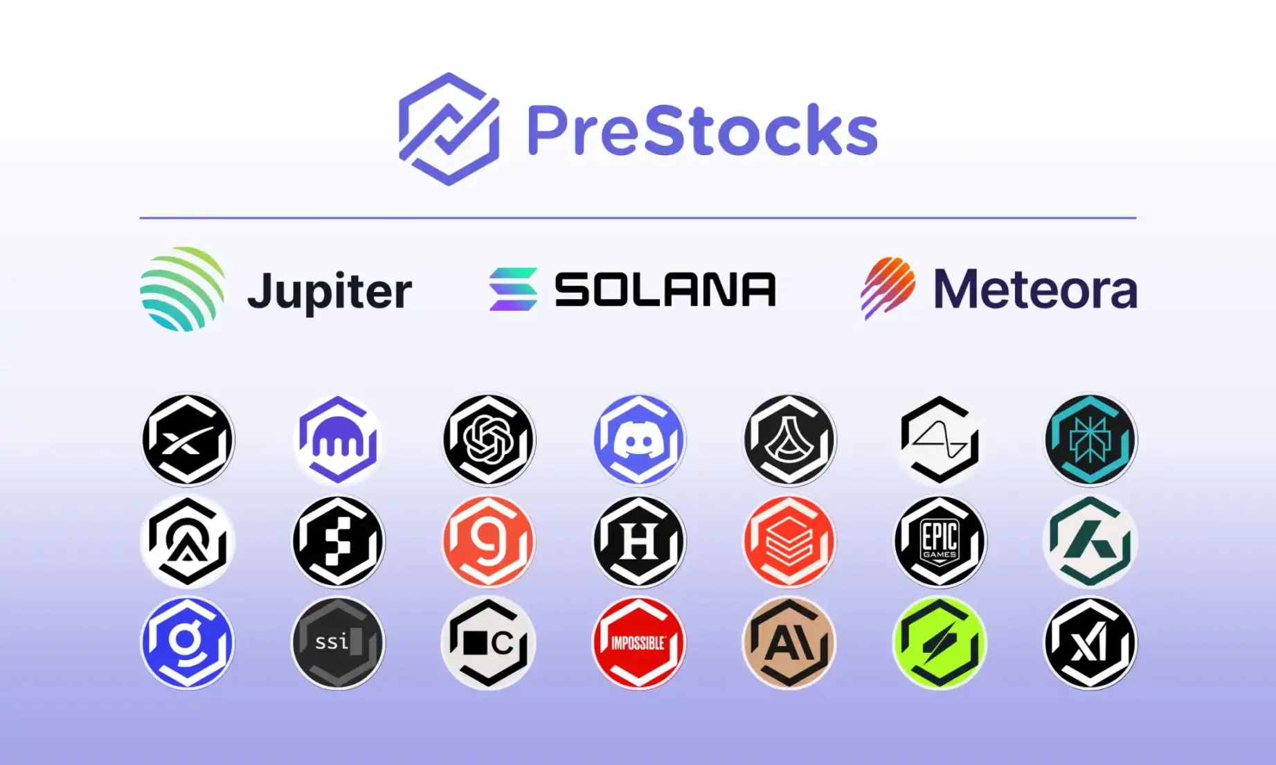 PreStocks 当前已支持 22 家 私营公司的代币交易,包括 OpenAI、Canva 等知名独角兽。用户只需一个 Solana 钱包,最低几美元即可买卖这些代币,没有投资门槛限制。PreStocks 上的代币可在链上自由转账,在 DEX 平台进行交易或借贷,甚至能提供流动性来赚取交易费,或使用它们来构建新的结构化产品。PreStocks 集成了 Jupiter 聚合器和 Meteora 做市商,实现了 7×24 小时交易和即时结算。