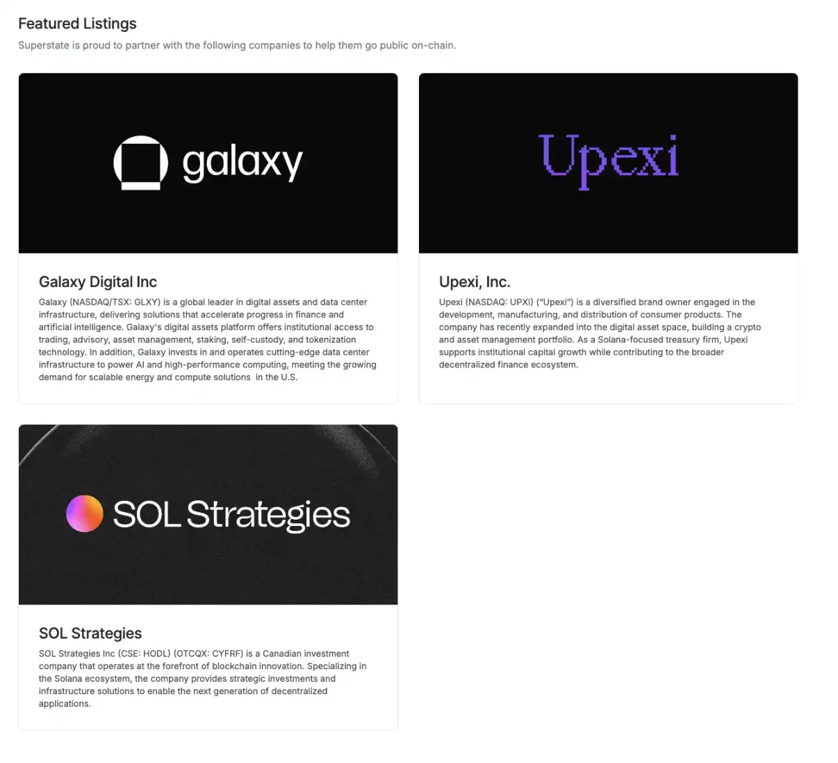这一模式的首次实践者包括纳斯达克上市公司 Upexi(股票代码 UPXI)和加拿大的 SOL Strategies 公司,前段时间因以太坊币股公司而热议的 Galaxy Digital 也参与其中(不过只有 SOL Strategies 这个案例还未在纳斯达克上市)。这需要严格的法律架构支撑,例如 Superstate 已经在美国注册了数字化登记代理(transfer agent),确保链上股东名册与传统登记同步。