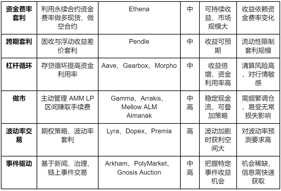 跨期套利 —— 以 Pendle 等协议为代表,通过固收与浮动收益差获取利润;