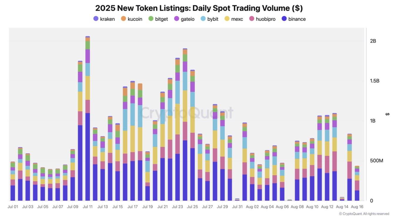 据CryptoQuant数据显示,2025年火币HTX新代币现货交易量排名第二