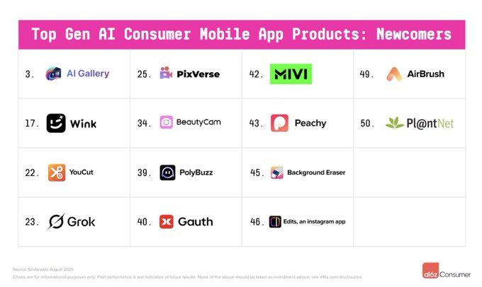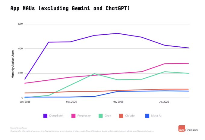 a16z 最新 AI 百强榜出炉:Grok 一年跃居前 4,中国应用全球突围
