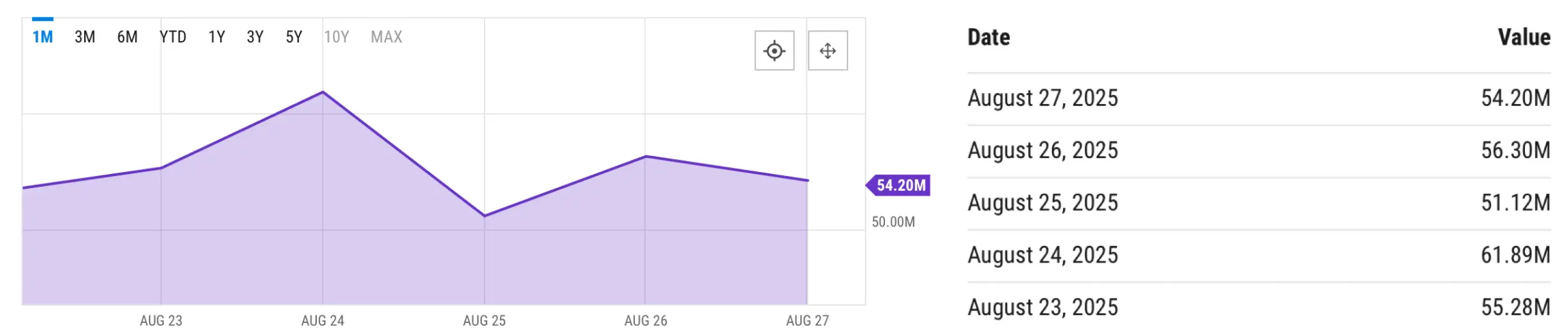 根据 YCharts 数据,过去一周,比特币矿工的日均总收入(包括区块奖励与交易手续费)在 5,112 万美元至 6,189 万美元元之间波动,具体如下: