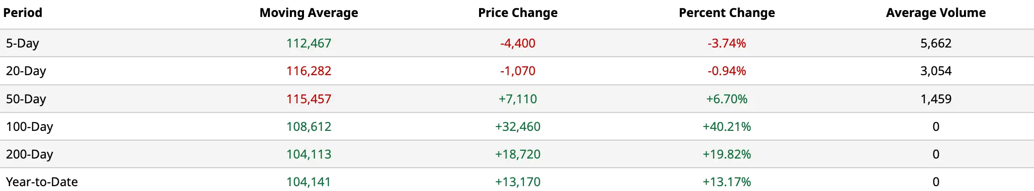 MA50(50 日均线):$115,457