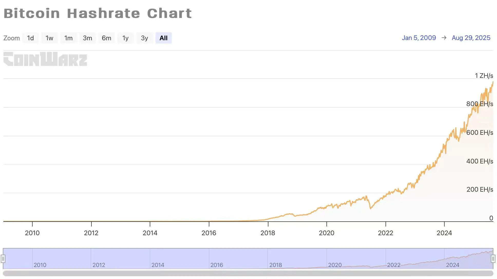 2018-2025 比特币网络哈希率数据