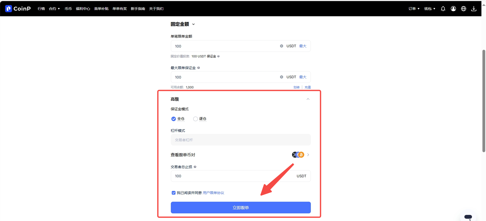 全仓:使用您跟单交易账户中的所有可用资金作为您的仓位保证金