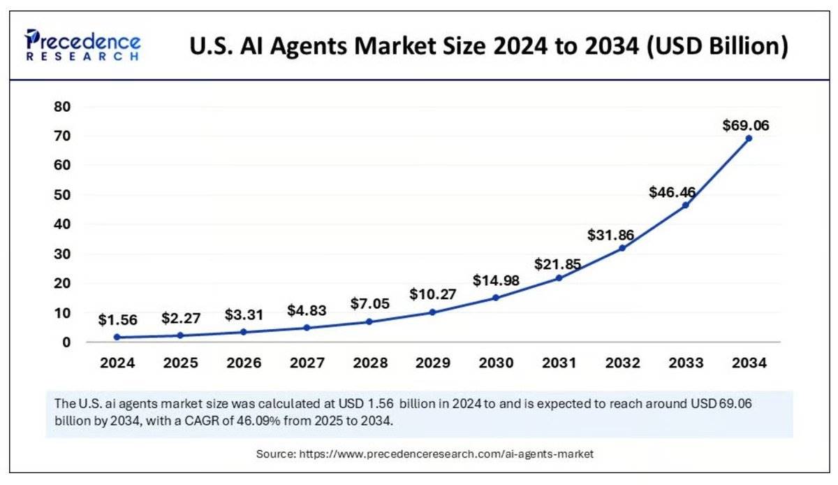 仅在美国,分析师预计到2034年,智能体市场规模将逼近690亿美元