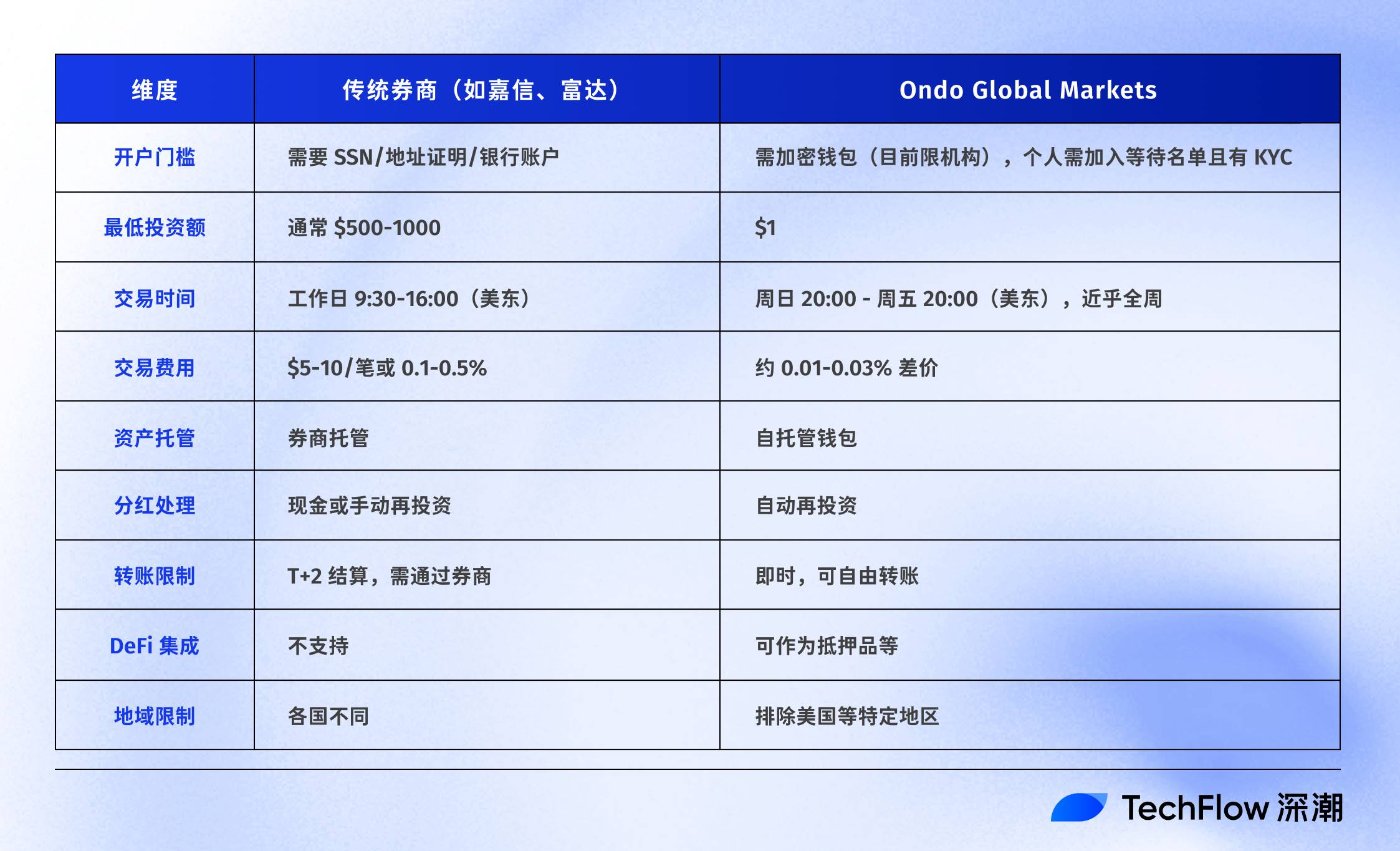 在金融市场,买入价和卖出价之间总有细微差额,这是提供流动性服务的成本和回报。传统券商也有价差,但他们还要额外收取5-10美元的手续费。Ondo只收价差,不收手续费。