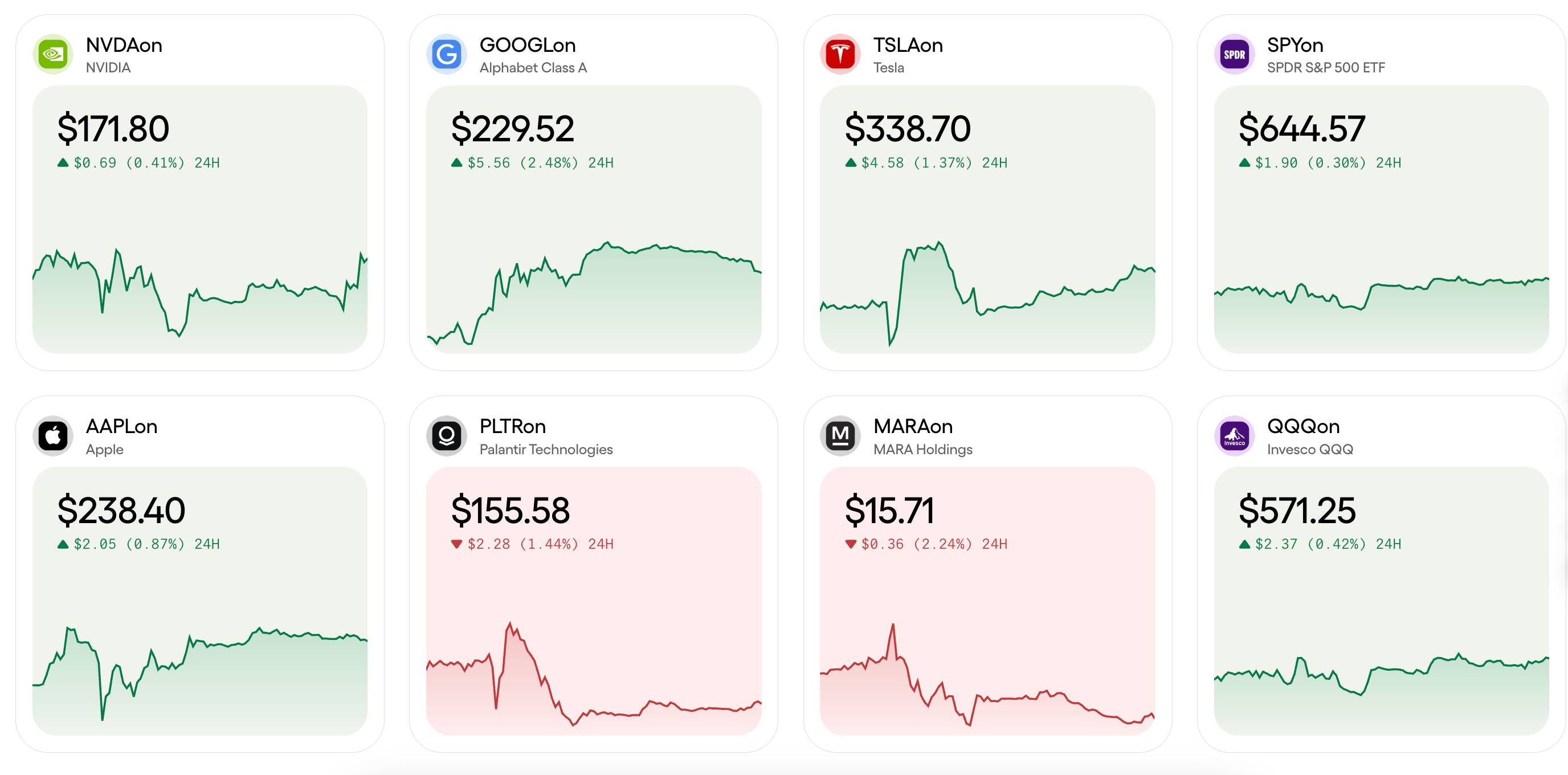 不过,每个美股的名称后面都带着"on"后缀,提醒你这是 Ondo 的代币化版本。