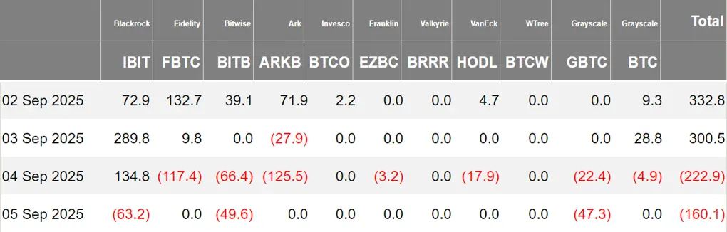 上周 4 只 ETF 处于净流入状态,流入主要来自 IBIT、BTC、FBTC,分别流入 4.35 亿美元、3320 万美元、2510 万美元。