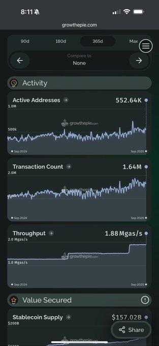 以太坊社区周期交易者 Ryan Berckmans 则甩出数据:当稳定币市值60%在以太坊上、还被美国财政部长点名重视、链上各项活跃指标都转好的情况下,这又是哪门子的衰退?