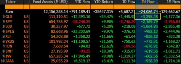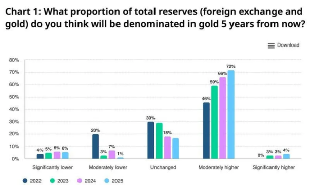 当股市摇摆不定、劳动力市场出现裂痕时,黄金已悄然重新成为系统性对冲工具。仅上周就有 33 亿美元流入 GLD(SPDR 黄金 ETF)。中央银行是主要的买盘:76% 的央行打算增加储备,高于 2022 年的 50%。
