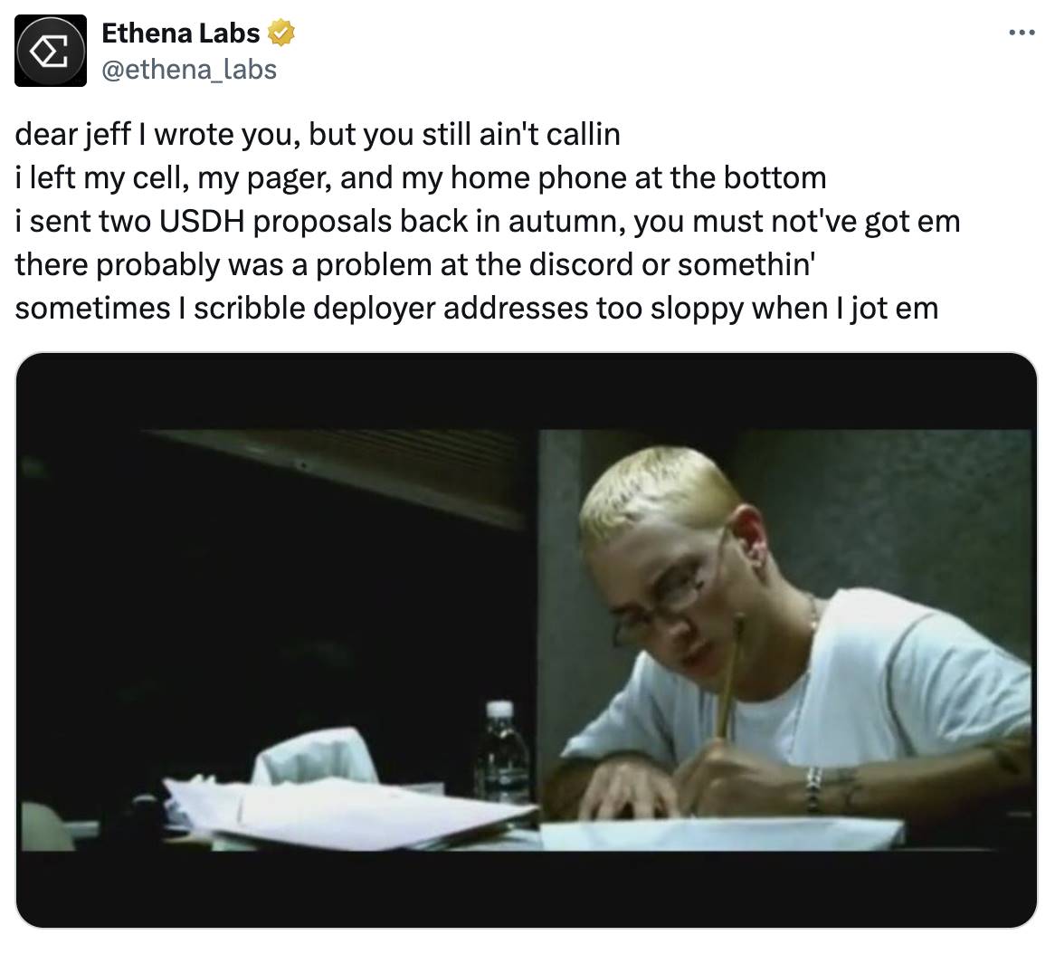至于本轮周期中异军突起的稳定币新玩家 Ethena Labs 则并未正式提交提案,其在推特上表示曾提交过两份有关 USDH 的提案,但并未获得任何回复。