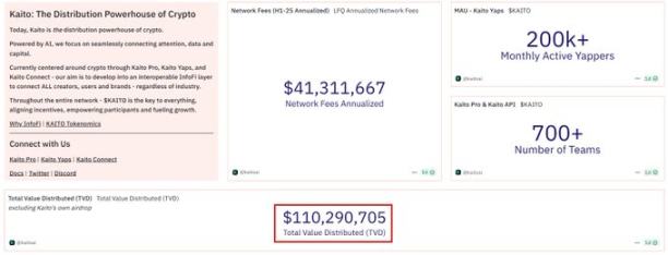 Kaito 对创作者具有成瘾性并不令人意外,它通过一种游戏化的体验分发可观的奖励。Kaito 已向超过 20 万个钱包分发了超过 1.1 亿美元(不包括其自身的空投)。