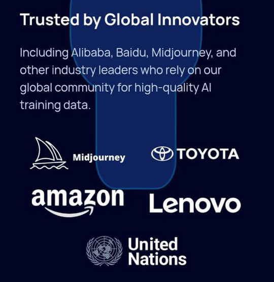 Sapien引起市场关注的原因不仅仅是用户数量的快速增长,更在于其展现的企业客户阵容。当前Sapien已经服务29家企业客户,包括丰田、阿里巴巴、百度、Midjourney和联合国等知名国际机构,这些客户涵盖了自动驾驶、电商、AI绘图、国际组织等多个领域。